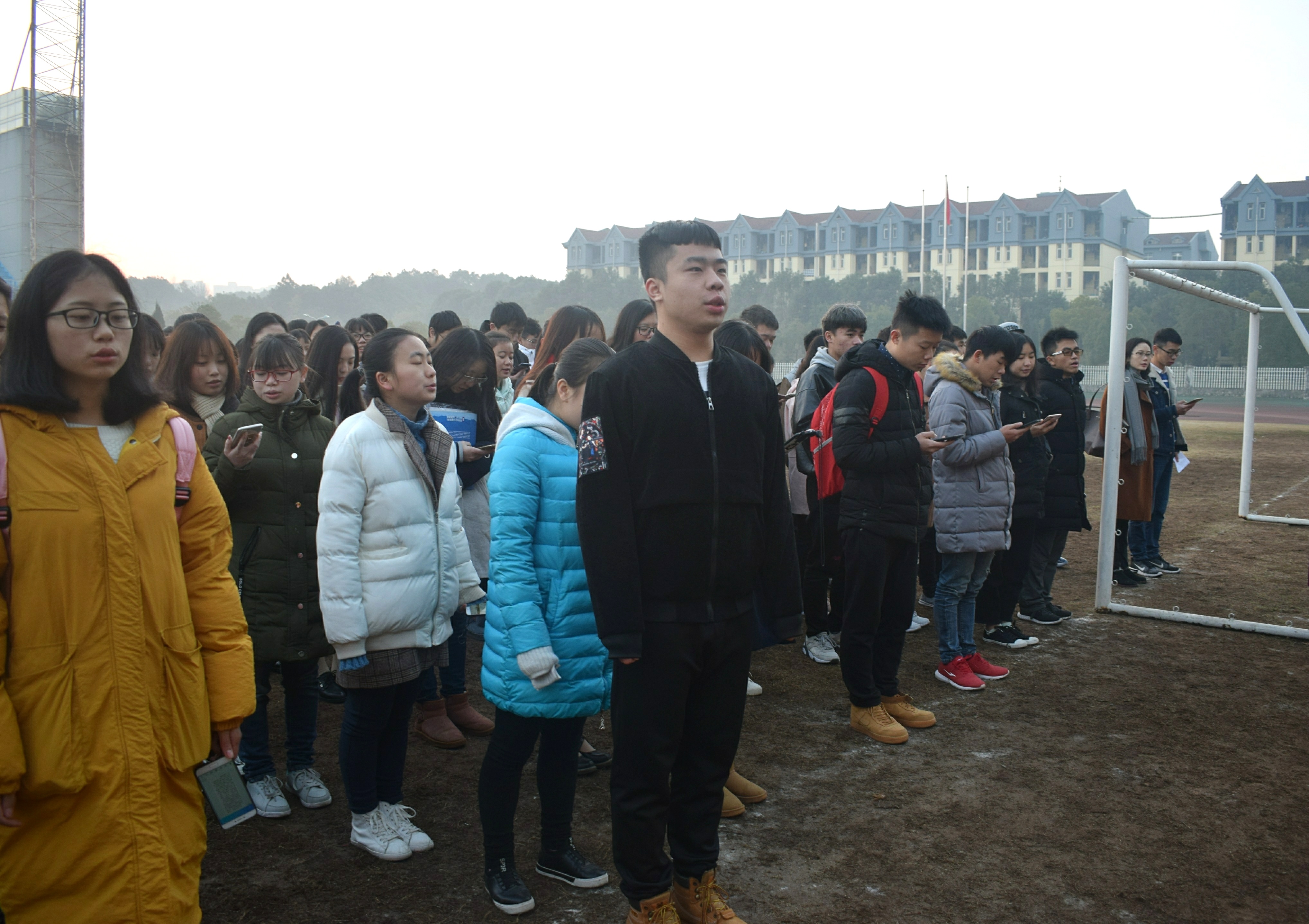 12月11日7点,法学院于天健体育场举行升国旗仪式。法学院党总支副书记刘秋菊、团总支书记傅诗贻、学生辅导员裴昊铭以及法学院全体学生参加了本次升旗仪式。