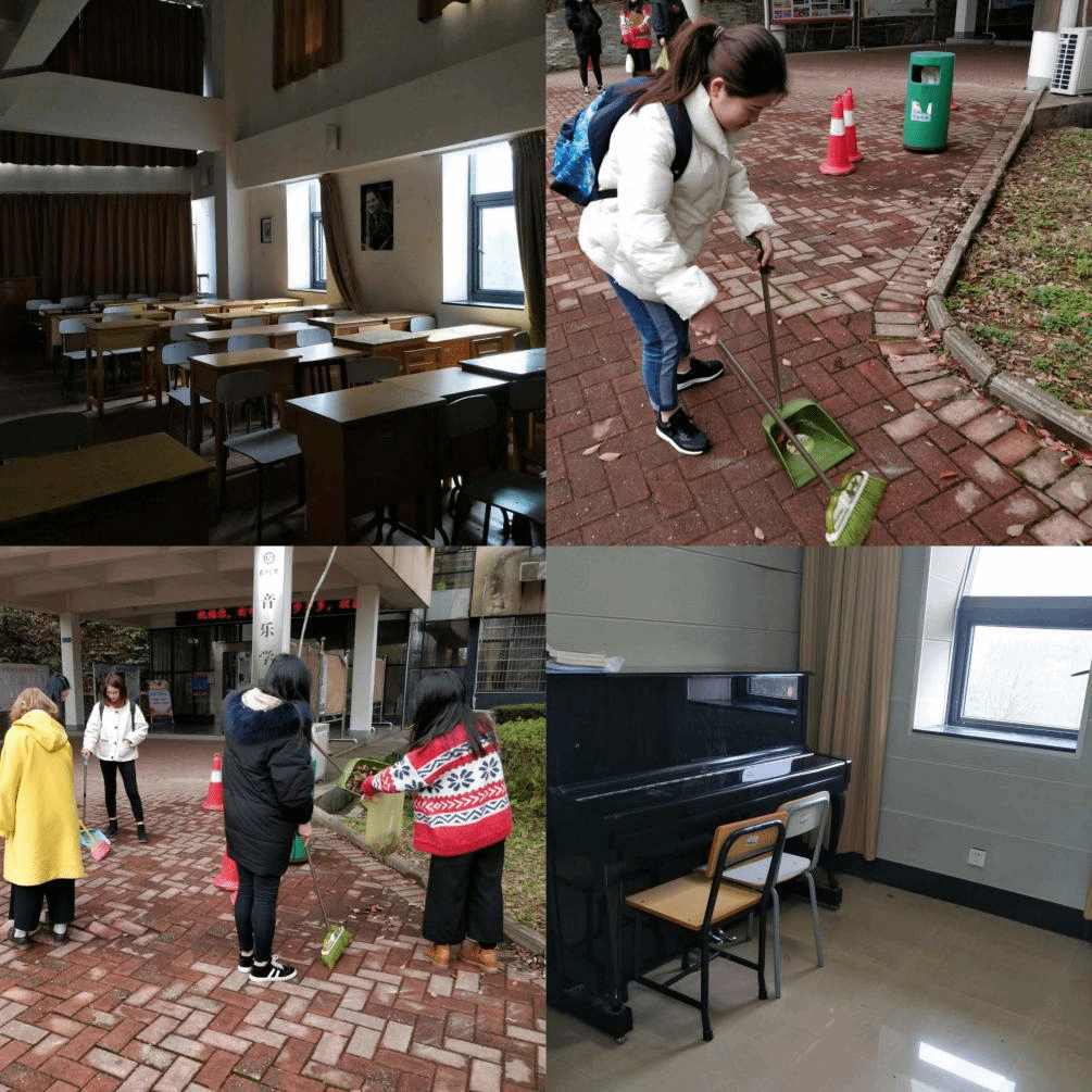 音乐学院组织学生党员、入党积极分子、学生会干部对音乐楼进行卫生打扫,同学们相互合作,合理分工,积极配合,不怕脏不怕累,把整个音乐楼打扫得干干净净,使音乐楼焕然一新。活动过程中,同学们积极主动,认真地完成了本次活动,为创建一个卫生文明的音乐楼贡献出自己的一份力量。与此同时,也向全校学生宣传雷锋精神,鼓励大家投身于志愿服务活动之中。