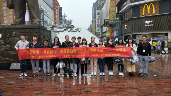 3月24日下午,由长沙地衣公益团体与经管学院青志协共同组织的“公益青春,与爱同行――救助流浪汉”地衣活动于黄兴南路步行街暖心开展。