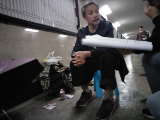 志愿者与流浪老人交谈(一)