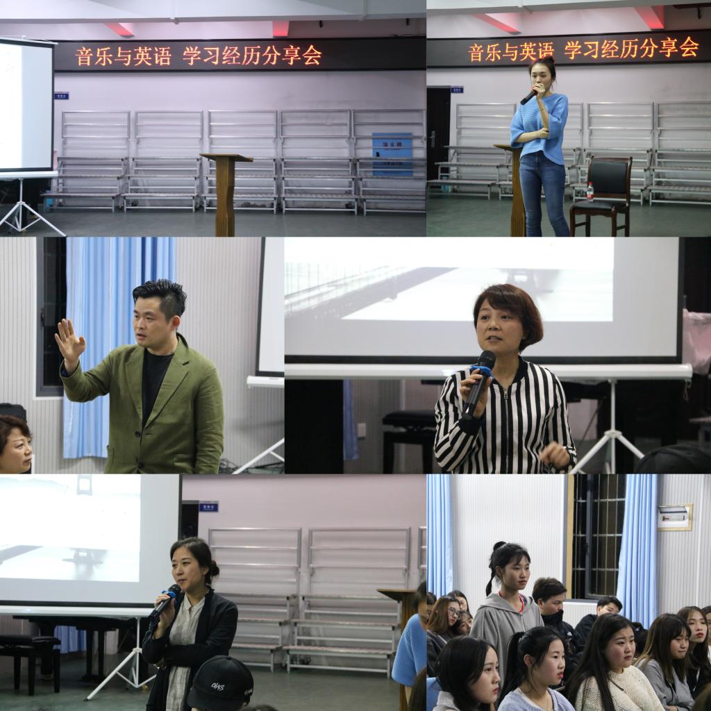 4月9日晚,为提高同学们学习英语的兴趣,提升学习氛围,音乐学院在音乐楼实训室举办了音乐与英语学习经历分享会。此次活动特邀音乐学院党总支书记陈滨滨,党总支副书记符勤,青年教师熊琦,辅导员李璇老师以及优秀毕业生刘婕妤,与同学们一起探讨英语学习的奥妙。