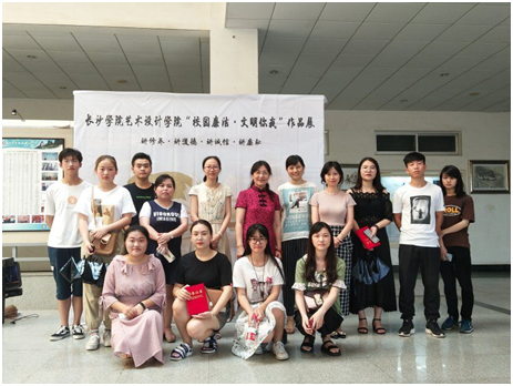 2018年6月25日上午9:40,由长沙学院纪委办主办,艺术设计学院党总支承办的主题为“校园廉洁·文明你我”作品展在丹青楼一楼大厅揭开帷幕。艺术设计学院院长柳玉教授、院党总支书记胡嫔教授、优秀指导老师学生均参与了本次活动。