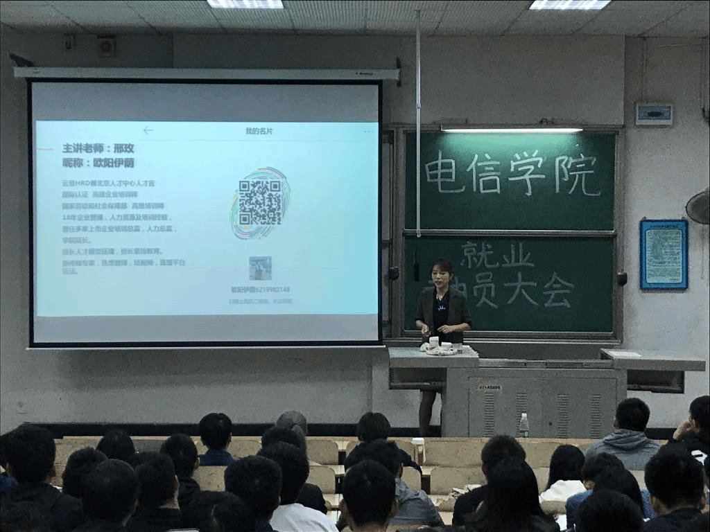 10月9日晚7点,电信学院就业动员大会在涵虚楼C多4顺利举行。电信学院党总支副书记胡小毅、2015级辅导员谭宏政出席动员会。本次大会邀请云思科技讲师邢玫做就业专题辅导。