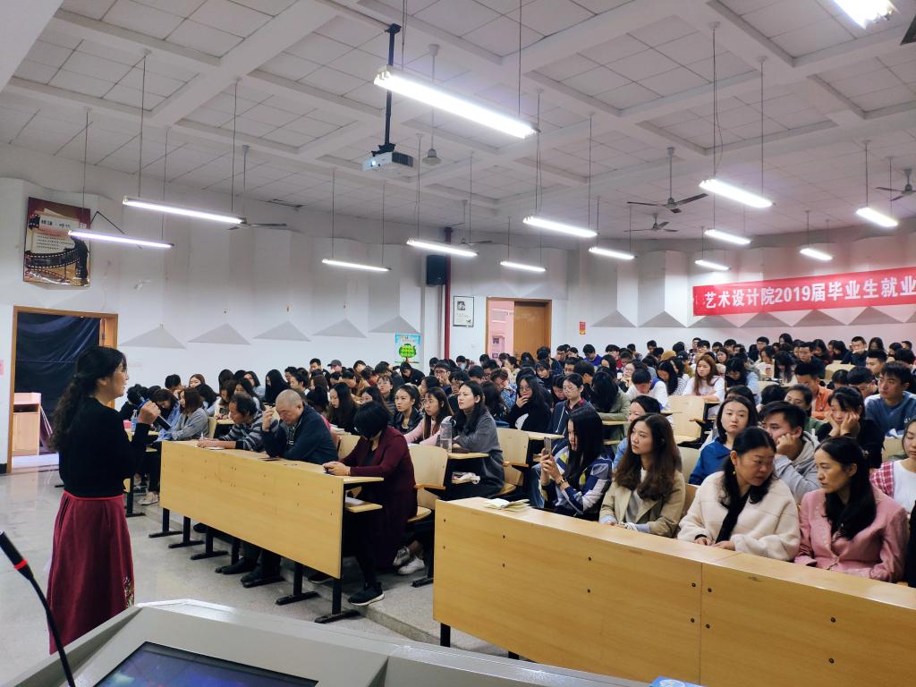 为进一步做好2019届毕业生就业工作,2018年10月11日上午9点,长沙学院艺术设计学院于丹青楼1101教室举行2019届毕业生就业动员大会。出席本次会议的有学院党总支书记胡嫔教授,院长柳玉教授,黄慧瑾副书记,张建龙副院长,各教研室主任,两位优秀校友张小贤、毛小霞,以及2015级近300名毕业生。