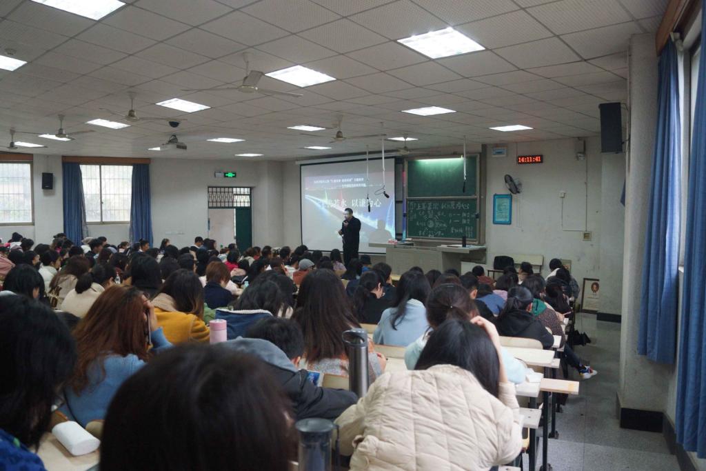 讲座由外国语学院党总支副书记王艾红主持召开,随后李云龙书记开展以“上善若水,以谦为心”的主题演讲。李云龙书记首先从中华传统文化中的“阴阳”两方面讲起,以“否极泰来”、“三阳开泰”为例,向同学们解答了“何谓阴阳调和”。李书记将“上善若水,以谦为心”中的“水”、“谦”分开来谈,何为“仁慈友善,感恩尚善”——认知是基础;为何要倡导“仁慈友善,感恩尚善”——认同是动力;如何做到“仁慈友善,感恩尚善”——认理是保障。并劝导当代大学生一定要——“走心,过脑,增智慧”、“不要在最好的位置睡觉”、“进了大学就是国家队队员”、“要为学校、单位、国家负责任”。
