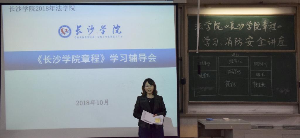 10月23日下午,我院在涵虚楼B多4教室组织了《长沙学院章程学习》暨消防安全讲座,各年级班长、寝室长及18级全体学生参加讲座。讲座由党总支副书记刘秋菊主持。