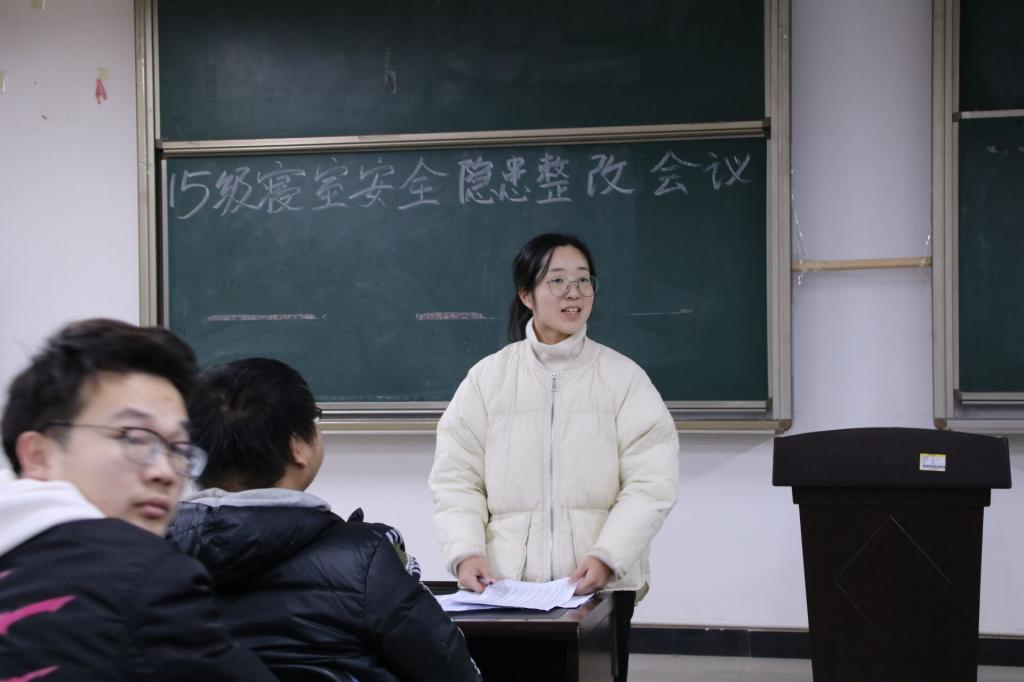 年级辅导员老师首先说明了冬季消防安全的重要意义,并对上周学院安全大检查中存在违规电器,插座未拔,卫生脏乱差,寝室不锁门、人走不断电等安全隐患的寝室提出了整改要求,明确了整改时间点,并安排了相应的学生干部进行督促整改。其次,进一步明确了寝室安全责任人的职责,要求安全责任人做到“三个明确、一个具体”:一是明确责任,即明确安全责任人和责任范围,安全职责要层层落实,责任到人。二是明确任务,对查出的安全隐患要制定相应的整改措施,学院将定期与不定期的组织学生干部进行安全检查。三是明确时间,要求寝室按时完成整改工作,不许推迟拖延。各寝室责任人要采取具体有效的措施,做好寝室的消防安全。最后,再次重申了《学生手册》中关于禁止饮酒和不允许私自校外住宿的相关规定,学院也将定期与不定期的组织学生干部进行抽查。