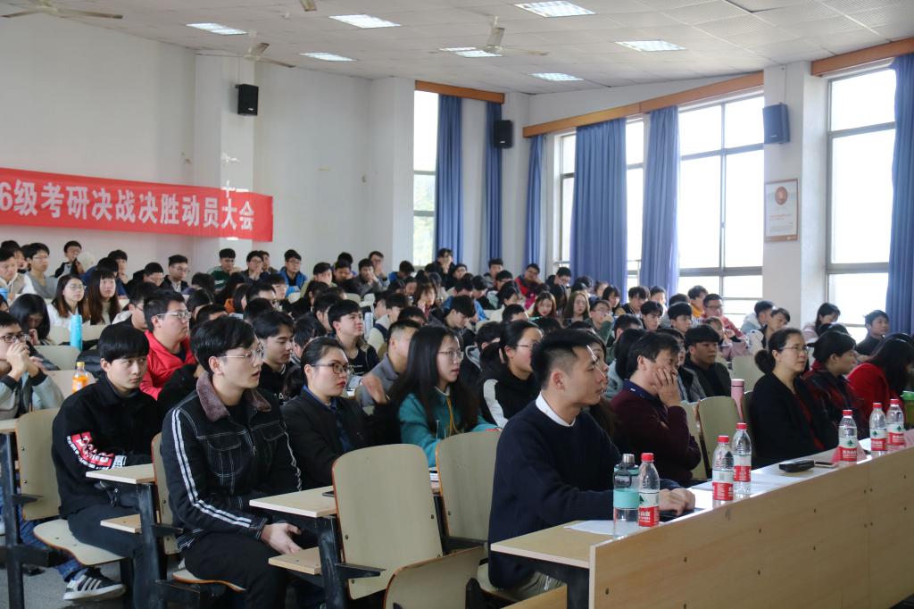 2019年3月12日中午12:30,长沙学院计算机工程与应用数学学院2016级考研决战决胜动员大会在涵虚楼A多4教室正式举行。计数学院院长李方敏、党总书记彭向阳、党总支副书记王芳以及全体辅导员出席,4名2015级考研初试代表受邀作经验分享,2016级226名考研同学参加。