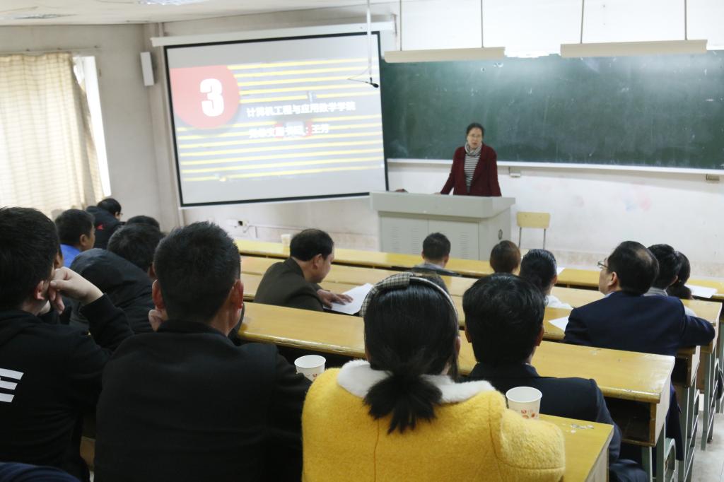 为切实加强学风创建,推动家校交流共建、共享、共赢,2019年4月12日中午12:00,长沙学院计算机工程与应用数学学院在致远楼2201教室召开了2016级重点关注学生的家长会,计数学院院长李方敏教授、党总支书记彭向阳教授、党总支副书记王芳出席,2016级辅导员苏霖主持会议。