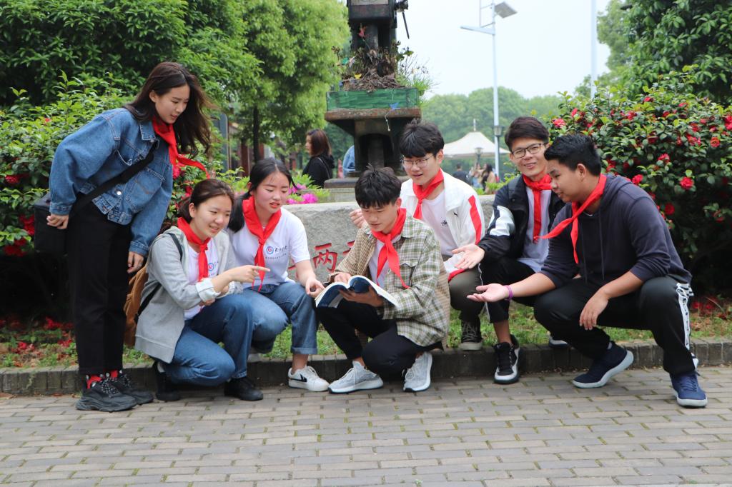 本次活动分为寻迹游戏和宣誓仪式两大环节。寻迹游戏以学院特色校园文化项目—“管培素拓项目”为蓝本,将全体团员青年划分8组,每组成员在“音乐喷泉广场”、“沁园春长沙新诗词碑”、“湖南省两型社会纪念馆”、“谁主沉浮雕像群”四个指定地点,分别完成“五四青年笑脸”、“诵读伟人诗词”、“定格热血瞬间”、“情景再现峥嵘岁月”四项任务。通过参与巧思设计的任务,让团员青年们在游戏活动中体验“爱国、进步、民主、科学”的五四精神。