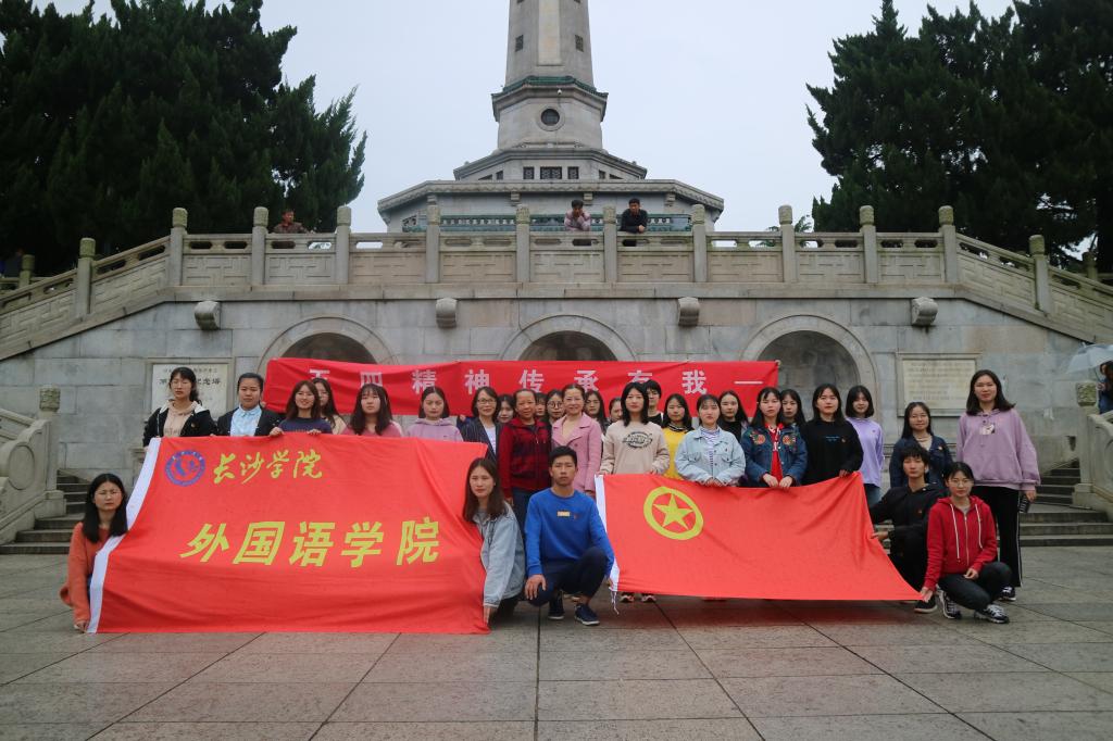 为了庆祝中国成立70周年,纪念五四运动100周年,激励和引领广大青年团员大力弘扬以爱国主义为核心的伟大民族精神,传承“爱国、进步、民主、科学”的五四精神,4月30日下午2:00,我院团总支在长沙市烈士公园举行了“青春心向党 建功新时代”主题团日活动,外国语学院党总支副书记王艾红、李小川教授以及优秀团干、优秀团员代表共40余人参与了本次活动,活动由团总支书记赵琼主持。