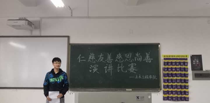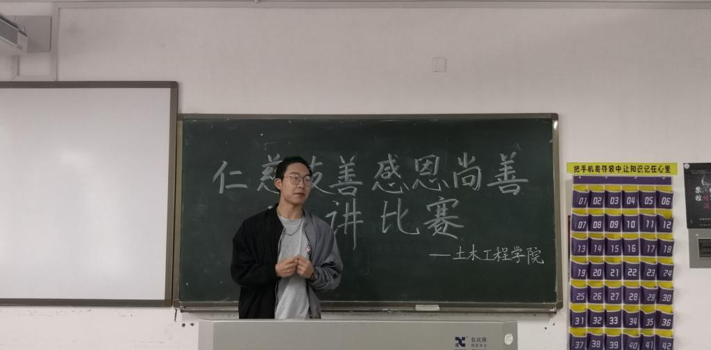 5月15日中午12:30,土木工程学院在理工楼A508举行“仁慈友善,感恩尚善”主题演讲比赛。学院团总支书记李晗,学工办主任谭寅寅出席比赛并担任了评委,各班学生代表依次上台进行了演讲。