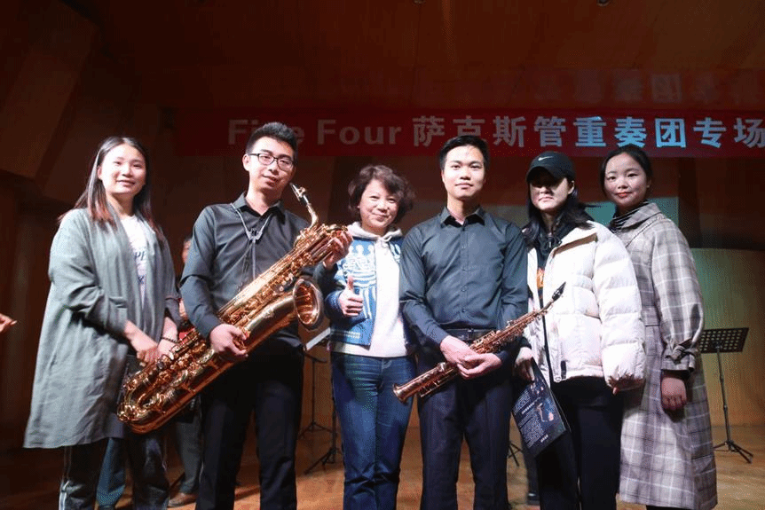 2019年4月30号晚,由长沙学院音乐学院联合湖南师范大学、长沙师范学院和湖南省艺术职业学院三所高校的音乐学院,以及湖南省萨克斯学会联合主办的“春暖花开季 浓浓萨克斯情” Five Four萨克斯管重奏专场音乐会,在师大音乐学院音乐厅举行。