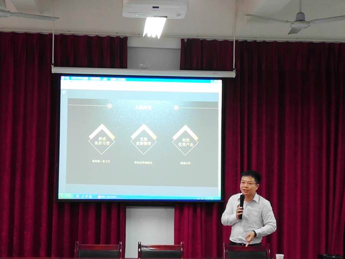 活动伊始,校友徐内阳以汽车行业为例,结合自己的工作经历,向大家讲述了好习惯的重要性。“在工作中,我们要克服贪婪懒惰,”他强调,“我们在电网上做短路测试等破坏性测试时,是必须24小时待命的。除此之外,我们要严格要求自己,坚持创造优秀的产品,方便客户的使用。”在谈及品行塑造时,徐内阳说道:“修养决定你能飞多高,走多远。”工作能力只能决定赚多少钱,但自身的管理和修养可以促成人生的高度。他通过一个同学的例子,互相比对向同学们展示了冲动、贪婪的后果以及自控和自律的必要。活动期间,徐内阳就“成长”这一方面给了大家一些建议:注重基础知识的积累,利用碎片时间去做一些有价值的事,要积极向“巨人”学习,结勤奋与实践为一体,把理想变成现实。最后,针对同学们对于“提高人生高度、职场中与同事的交流”等疑问,徐内阳一一解答并嘱咐大家:“定好一个目标,做好本职工作。”