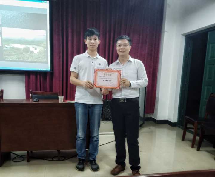 聂云志为学徐内阳学长颁发“优秀校友”荣誉证书并总结发言。他说,大学生的主要任务是学习,在学习之余培养兴趣、爱好,独立思考,拥有自己的判断和选择;要积极参与实践活动,不断提高自己的专业水平与综合素质。