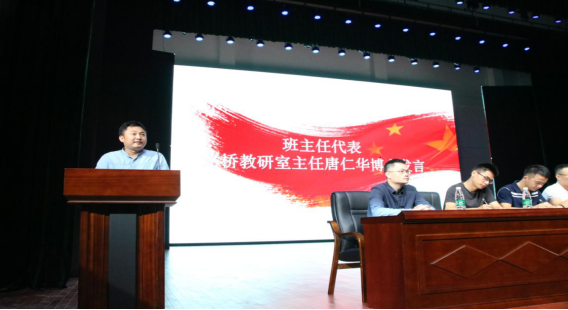 唐仁华博士代表新生班主任发言,他首先向2019级新生表示热烈的欢迎,他围绕“大学究竟是什么?”和“大学究竟如何学习?”这两个问题,表达了自己的观点,并希望同学们在初入大学时要认真思考这两个问题,在不断追问中找到自己的答案,并内化为精神动力。