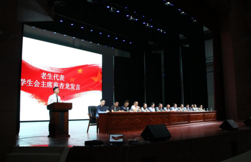 第十五届学生会主席苑杏龙代表在校生发言,他以学长的身份对新生提出了最真心的建议及祝福,希望他们在大学四年学有所成,走出一条最适合自己的人生之路。