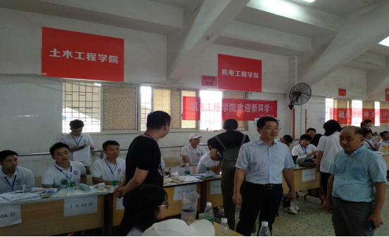 上午8点整,学院党总支书记徐远超、院长匡希龙、副书记杨群英、副院长雷鸣等党政领导来到学院迎新点,询问迎新工作安排、新生报到、入学教育等情况,并向辛勤工作中的老师和同学们表示感谢,同时叮嘱志愿者们要做细做实迎新工作,努力给新生和家长提供热情周到的服务,确保迎新工作高效有序、安全圆满。