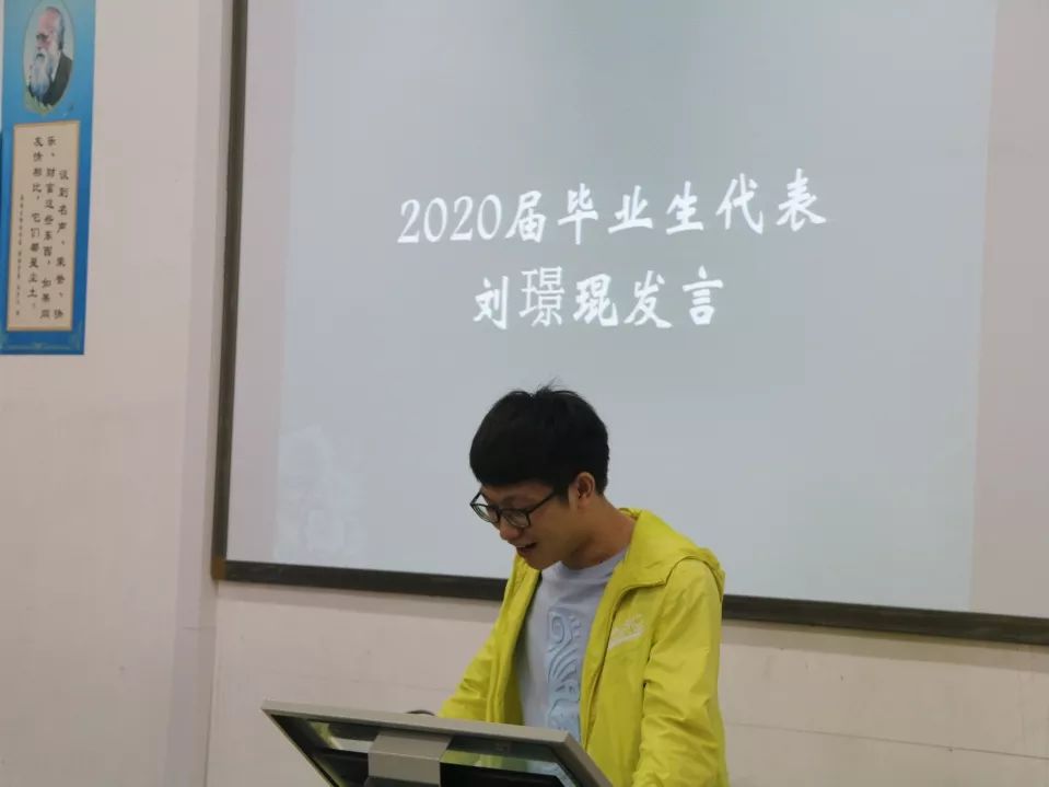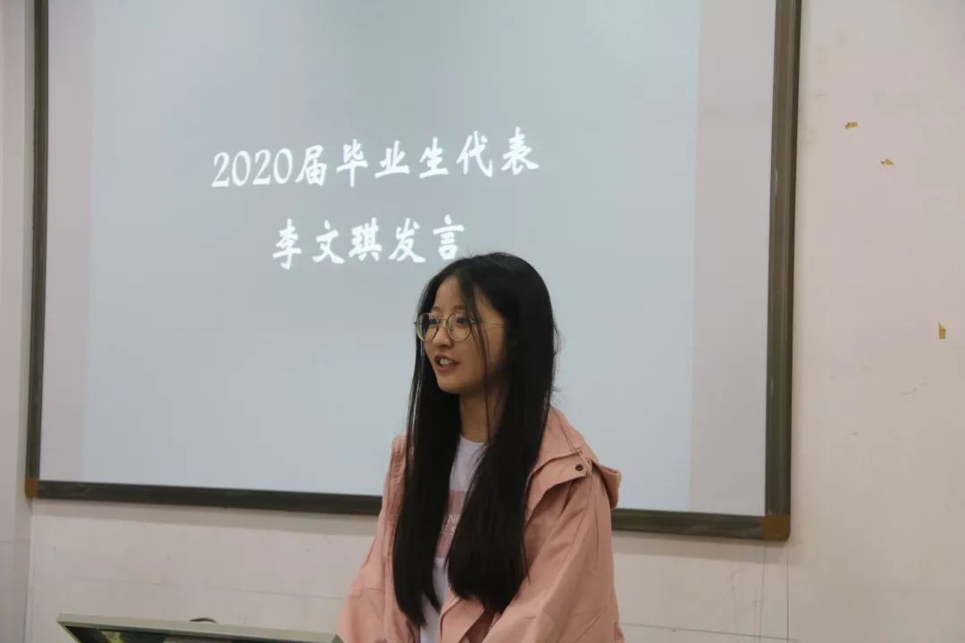 随后,2020届两位毕业生代表李文琪、刘璟琨分别讲述自己的学习经历、就业创业感悟,并给予同学们就业建议,鼓励大家保持积极心态,找准个人定位,做好职前自我提升。