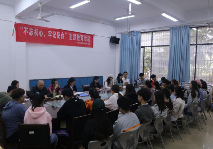 根据主题教育“守初心、担使命、找差距、抓落实”的总要求,旨在全面贯彻落实《关于加快建设高水平本科教育 全面提高人才培养能力的意见》文件精神,全面提高音乐学院管理服务、教育教学质量,音乐学院于10月22日中午召开“不忘初心、牢记使命”主题教育系列活动之师生座谈会。学院党总支书记陈滨滨、党总支副书记刘静、副院长谢萍、教研室主任刘丹、陈赛、贺辉、王琛媛、刘小标、学生辅导员李璇及2017-2019级学生代表参加。本次座谈会由党总支副书记刘静主持。