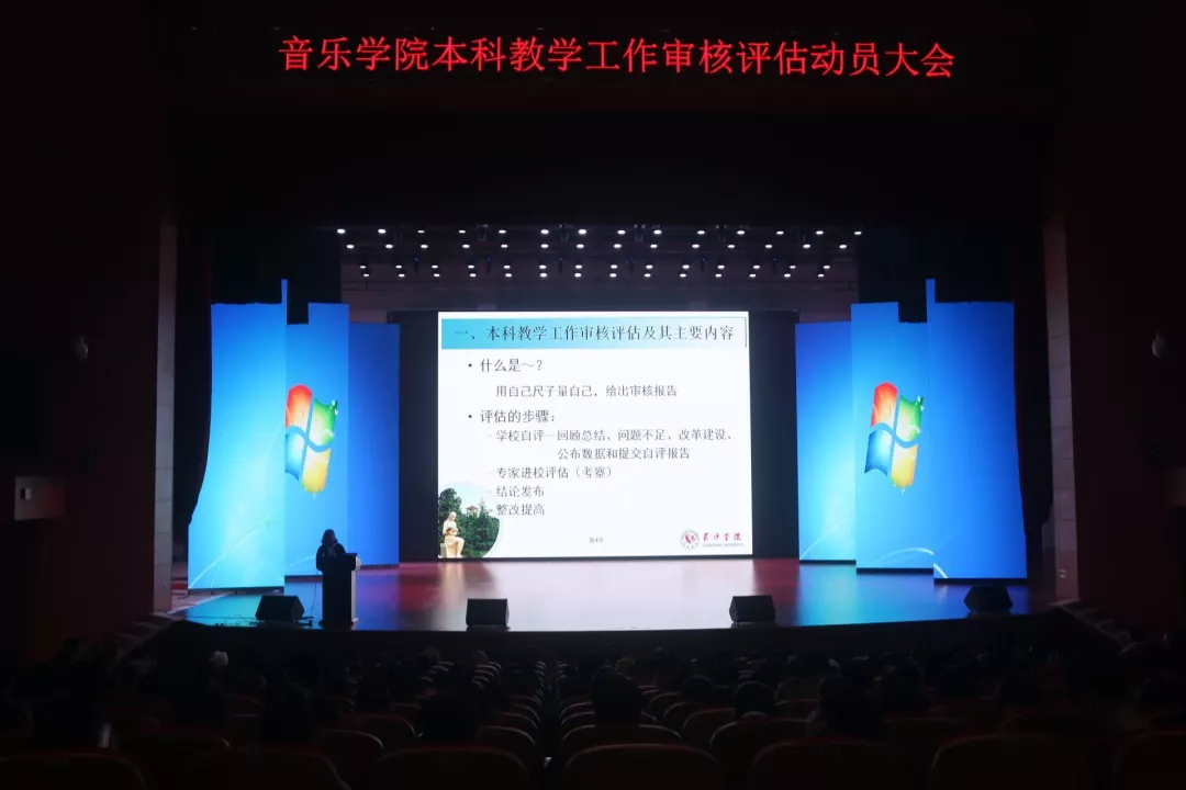 2019年11月4日中午,音乐学院在新礼堂召开“学校是我家,评估靠大家”迎接审核评估动员会,参加本次会议的有党总支书记陈滨滨、副书记刘静、辅导员张腾、李璇以及2016-2019级全体学生。