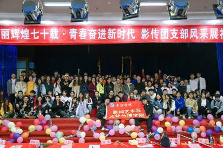 活动开始前,胡嫔书记上台致辞。她表示,很高兴能够看到各支部积极筹备节目,并且对各团支部准备的节目充满期待。随后,由19级编导2班带来的《沉浮70》拉开晚会帷幕。