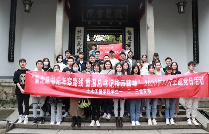 2020年9月17日,习近平总书记考察岳麓书院并发表重要讲话,在全省大学生中引起热烈反响。11月17日下午,长沙学院土木工程学院党总支组织全体学生党员开展“重走总书记考察路线,重温总书记指示精神”主题党日活动,学习领会习近平总书记重要讲话精神。
