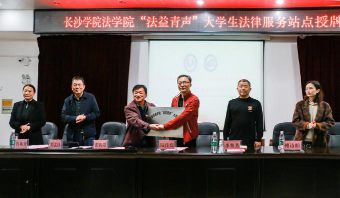 11月16日下午,法学院“法益青声”宣讲团成员在长大附中图书馆会议室开展了《垃圾分类管理条例》宣讲并举行“法益青声”大学生法律服务站点授牌仪式。法学院党总支书记彭向阳、党总支副书记肖燕芳、团总支书记傅诗贻,长大附中校长陆佳宾、党委书记刘孟佳、纪委书记兼关工委主任李继芳出席了授牌仪式。活动由长大附中团委书记刘志兵主持