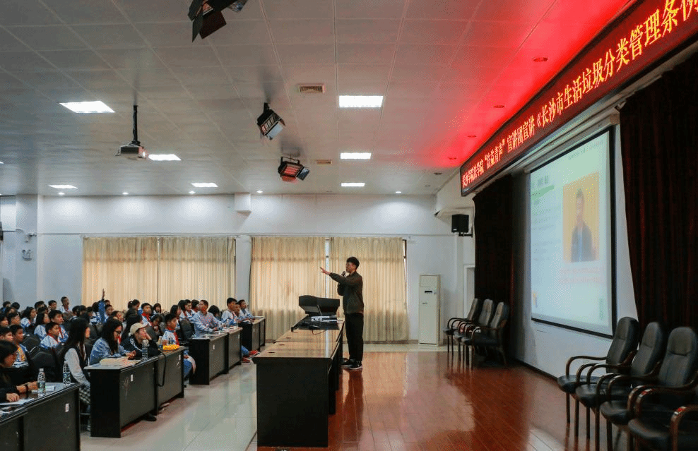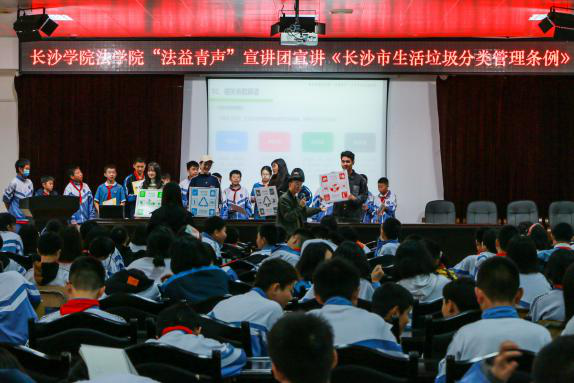 授牌仪式结束后,我院“法益青声”大学生宣讲团对初一学生进行了《长沙市生活垃圾分类管理条例》的宣讲。