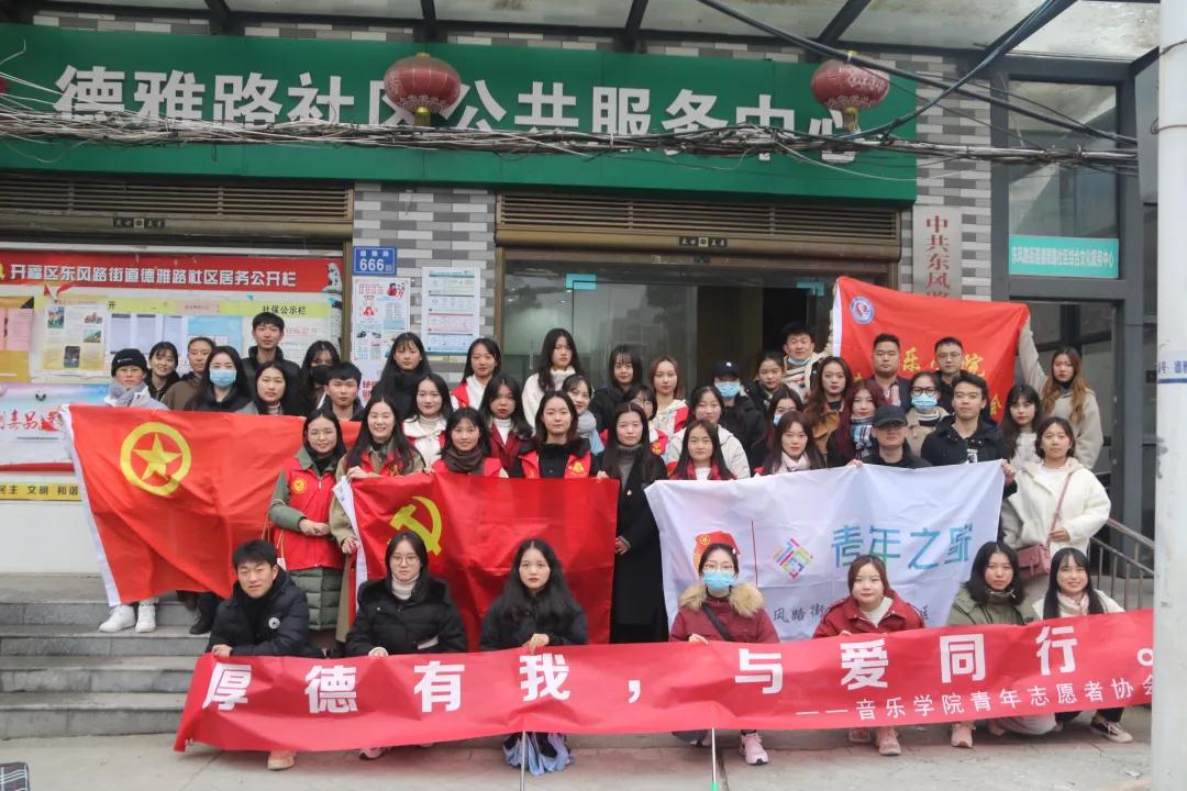 青春志愿行,建功新时代。厚德有我,与爱同行。音乐学院牢牢把握校地联动协同育人契机,将每一个音乐学子志愿者力量投入社区、投入社会,引导学生在社会实践中做一个开拓创新、奋发有为的青年志愿服务者,助力“厚德开福”,为社区发展、文明城市建设贡献出自己的一份力量。