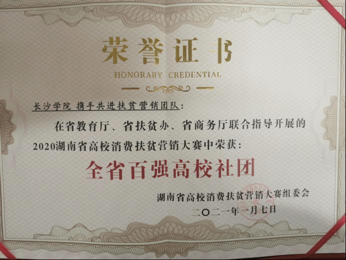 日前,由湖南省教育厅、省扶贫办、省商务厅联合指导开展的湖南省高校消费扶贫营销大赛已落下帷幕,我院“携手共进扶贫营销团队”荣获湖南省扶贫团队第六名,团队队长冯思童同学荣获湖南省高校扶贫营销大赛亚军、优秀宣传大使、最佳人气奖、优秀个人及青年营销人物5项荣誉。