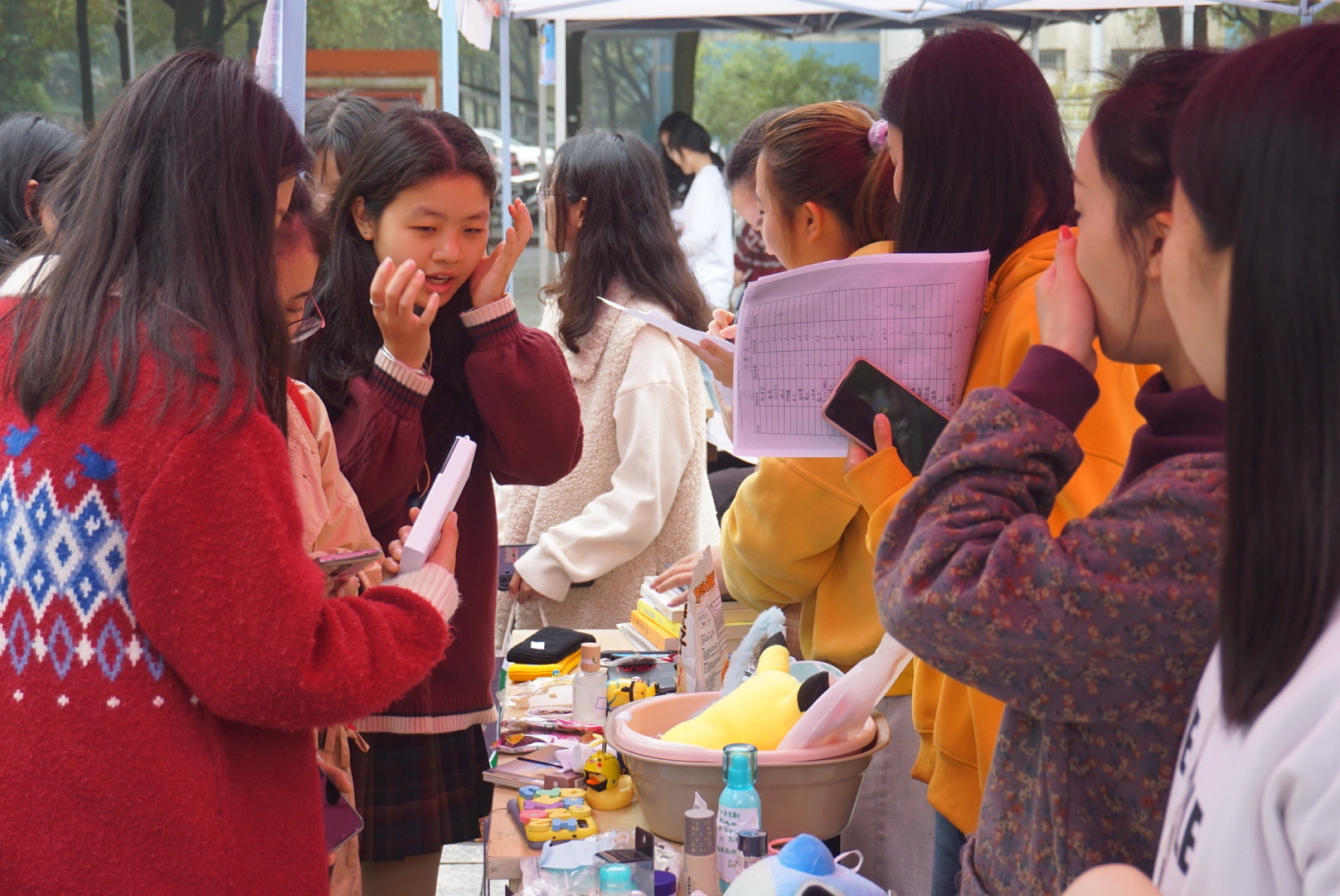 活动现场,人头攒动,各摊位被各班装饰成具有专业特色的小店铺,在店铺显耀的位置张贴着20级同学设计的活动主题海报。此外各班宣传方式颇具特色,通过抽福袋、猜英文歌、吉他点唱等方式吸引更多人来本班摊位。各班用于义卖的商品也琳琅满目,不仅有学习用品、中外名著,也有手工艺品、毛绒玩具、零食等。一阵阵嘹亮悠长的吆喝声,一件件洋溢爱心的义卖品,一张张阳光自信的面孔,让维智广场成为欢乐的港口,爱心的海洋。前来购买物品的同学不仅买到了自己满意的物品,也献上了自己的一份爱心。