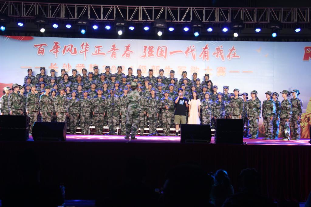 为庆祝中国共产党一百周年华诞,我校于9月22日晚7点,在天健体育场隆重举行“百年风华正青春,强国一代有我在”——长沙学院2021级新生军歌大赛。六营一连作为参赛连队代表法学院参加本次比赛。党委委员副校长祝磊、党委学工部部长徐远超、后勤党总支书记陈令克、国际合作与交流处处长青锋出席本次会议。音乐学院院长李巧伟以及部分音乐专业教师和专业嘉宾担任本次大赛评委。各学院党总支书记、副书记,各团支部书记和辅导员老师观看了本次比赛。