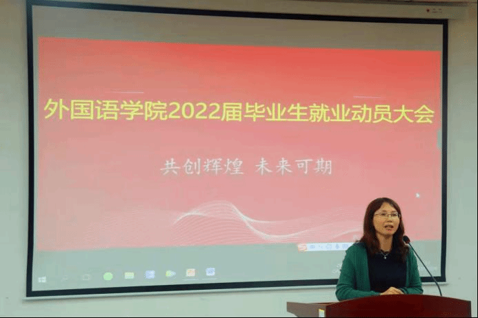 本次就业动员大会既是学院对毕业生进行的就业指导,也是对学生人文关怀的体现,表现出外国语学院全体教职工对毕业生们在就业大考中交出满意答卷的殷切期盼。这次大会对同学们了解就业形势、拓宽就业思路具有重要意义,也对学院毕业生实现高质量就业打下了坚实基础。