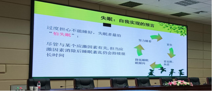 讲座中,马医生从人们为何会出现睡眠问题和如何解决睡眠问题两个方面,深度剖析了当代人群的睡眠情况。马医生指出:当失眠者过度担心自己是否能睡好时,反而睡不好,良好的心态有助于缓解睡眠焦虑。他向在场的师生分享了5种有效的出睡眠障碍的应对方法:1.药物治疗 2.认知行为治疗 3.睡眠限制治疗 4.刺激控制治疗 5.松弛治疗。 马医生还详细介绍了各类药物的疗效和利弊,提醒大家身体不适时一定要及时就医。