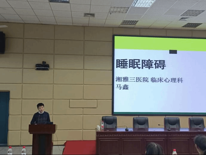 为了更好地科普睡眠知识,帮助学生提高睡眠质量,10月19日下午2点长沙学院心理健康教育中心和外国语学院“成长氧吧”辅导室在致远楼学术报告厅联合举办了一场以“我们关心的,还有你的睡眠”为主题的知识讲座。主讲嘉宾为中南大学湘雅三医院的临床心理科主治医师、临床心理学博士马鑫。心理健康教育中心全体老师、二级学院心理联络员、二级学院心理部成员和各班级心理委员参加了这次讲座。