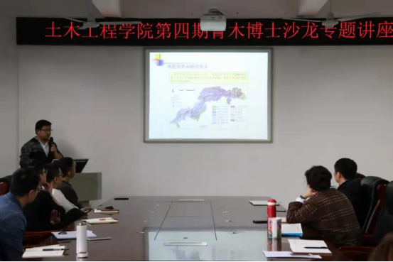 在讨论环节中,两位青年博士分别就“公路沥青路面结构”、“如何判断滑坡是处于变形还是破坏”等问题,与在场师生进行了深入的交流与探讨。