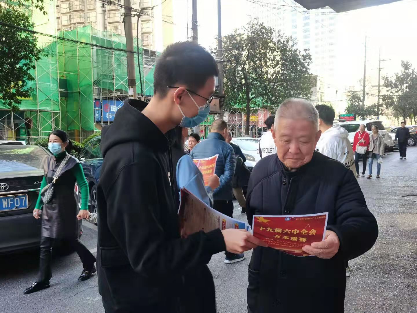 在社区主干街道、商铺以及部分住宅,傅诗贻和团队成员将事先制作好的关于党的十九届六中全会精神宣传单向群众发放,耐心传达十九届六中全会会议精神。宣传中,发现个别群众对党的第十九届六中全会相关信息及进展缺乏主动了解,团队成员们耐心介绍,呼吁大家共同学习会议精神。