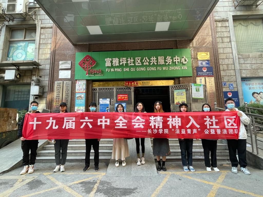 为传达学习党的十九届六中全会精神,全力以赴做好全会精神宣传工作。11月13日,法学院“法益青声”公益普法团队在指导老师傅诗贻的带领下走进富雅坪社区,为社区的居民们宣传会议精神。