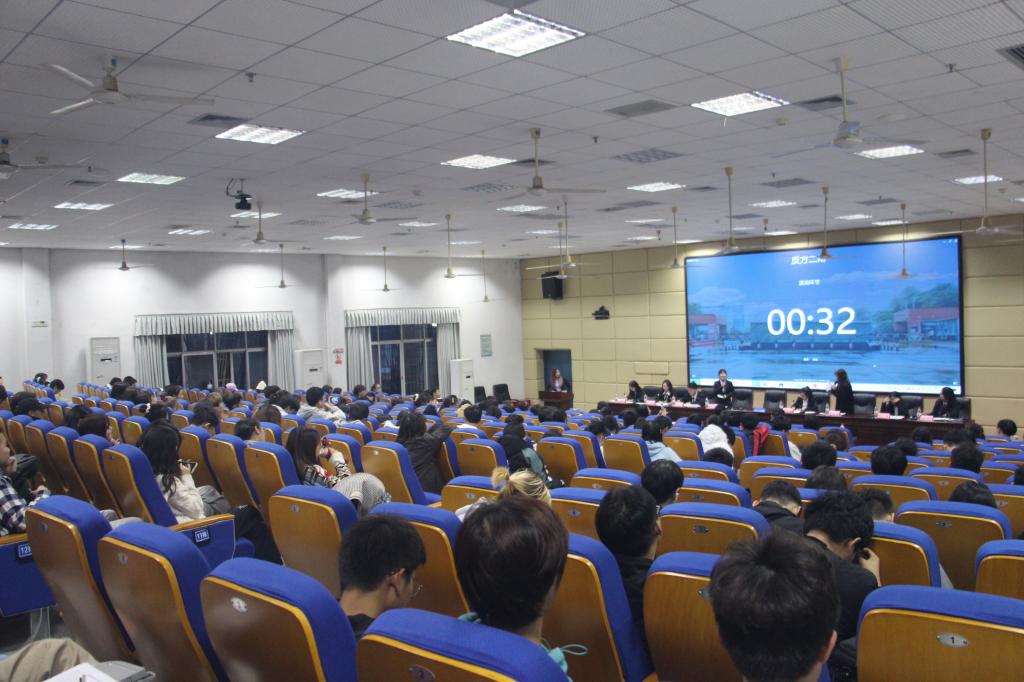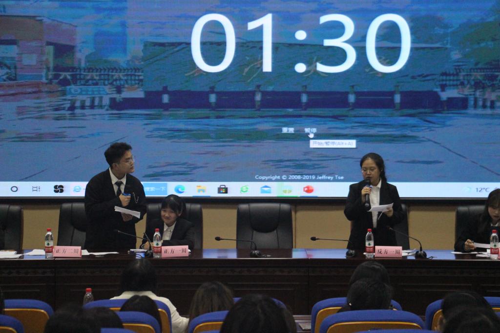 为提高新生的思辨能力、临场反应能力、语言表达能力,增强学生团队协作的意识,营造浓厚的学习氛围,法学传播与研究协会与法学院辩论队联合举办了一项新生辩论赛。比赛由新生自发组队报名,通过积分赛制决出四强,最终于11月14日晚在致远楼学术报告厅进行决赛。校关工委副主任李云龙、法学院党总支书记胡卉明、党总支副书记廖生成、学工办主任傅诗贻、21级新生班主任韩晗、学生辅导员张正东出席了此次决赛现场。