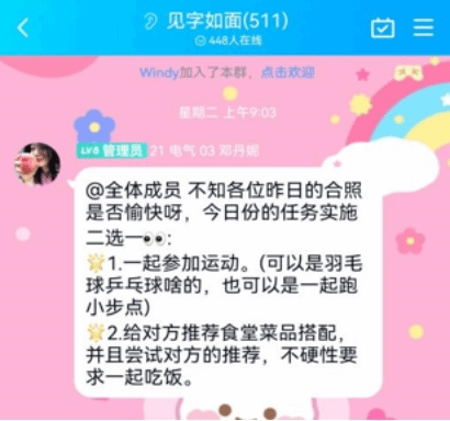 活动前期通过官方QQ以及微信公众号进行推文宣传。该活动主要内容是参与者扫描问卷星二维码进行线上填写问卷,并由工作人员将参与者拉入任务群,报名结束后,由工作人员在群内公开匹配结果。