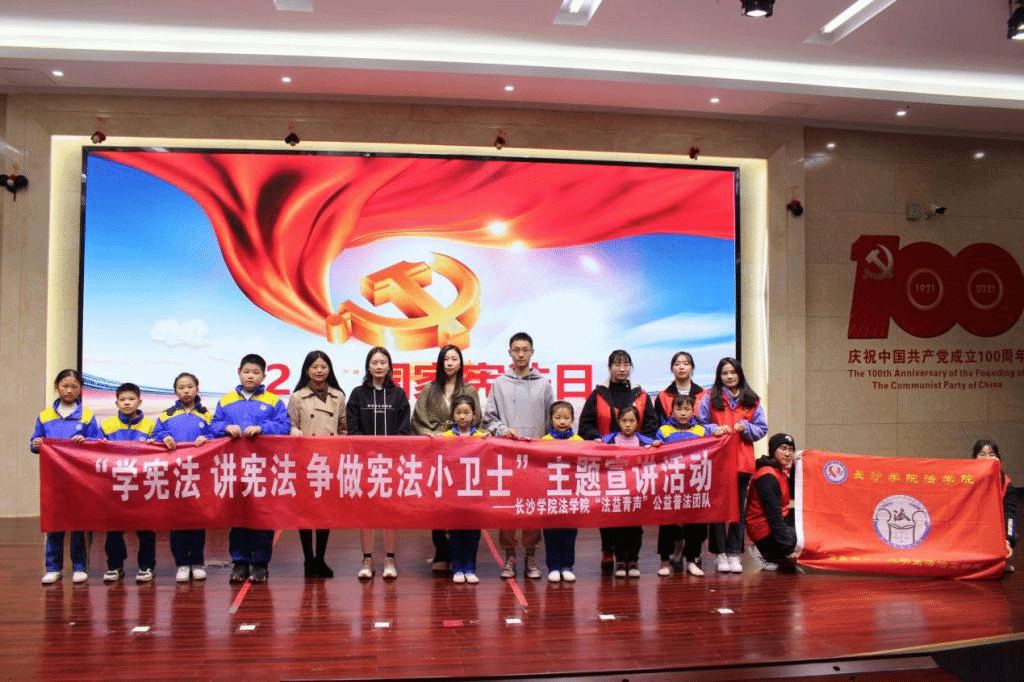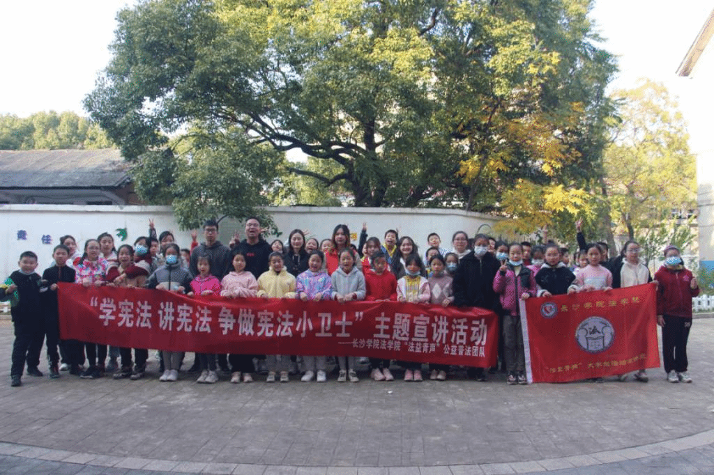 连日来,长沙学院法学院“法益青声”公益普法团队在指导老师的带领下,先后走进育德小学浏阳河小学,为小朋友们宣讲宪法知识