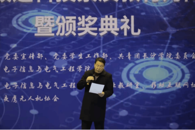 电子信息与电气工程学院院长副刘辉致辞。他指出本次比赛面向全体同学,举办此次活动的目的旨在弘扬科学精神,培养科学素养,提高学生综合素质,培养创新型人才,希望学生以此激励自己培养创新意识,将理论与实践相结合,学以致用才能更好的创作新科技。