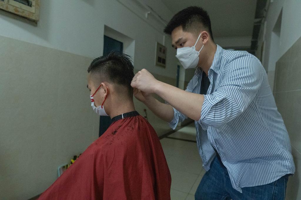 鉴于目前疫情防控形势严峻,长沙学院采取“非必要不出校门”防疫制度,很多同学却为理发犯了愁。该校艺术设计学院2019环艺1班学生李欣鑫在敏学五栋宿舍楼的走廊里开了一间“Tony爱心理发店”,免费为男同学们理发。“刚开始只有熟悉的同学来理发,每次围观的人很多。后来大家看到理发效果不错,来理发的同学就变多了。”李欣鑫告诉记者,自己的理发手艺是在部队里学的。“我在2019年入伍,当时的老班长是个理发高手,拥有一套精致的理发工具,他教会我理发,还教我使用电剪等理发工具,我一开始剪得很慢,效果也不太好,后来熟能生巧,越剪越好了。”总是在休息时间为战友们理发、在生活上也处处照顾大家的老班长是李欣鑫心目中的‘雷锋’,2021年9月,李欣鑫退役复学,又回到了学校,面对疫情下的校园生活,自己总想为同学们做一些力所能及的事情,于是开起了这家“Tony爱心理发店”。“因为理发,我和很多同学变成了好朋友。而且身为党员,能用自己所长来帮助大家,让我觉得非常开心。”李欣鑫说。
