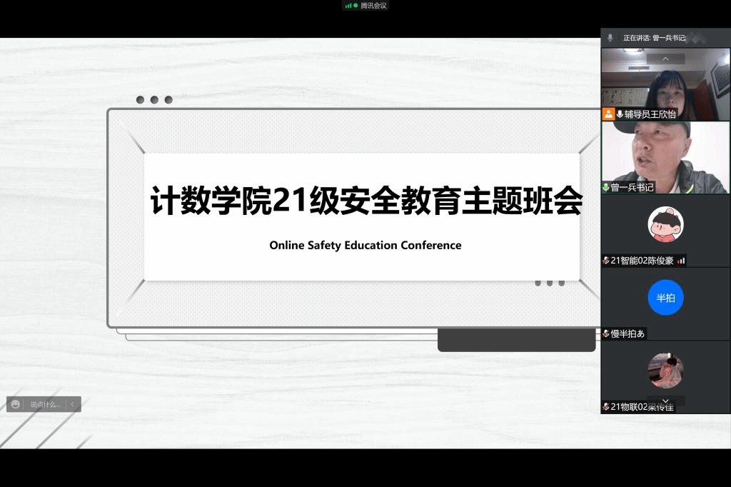 5月3日至5月5日,计算机工程与应用数学学院各年级召开班会,进行安全教育。20级、21级采取线上班会形式,19级则线下进行。