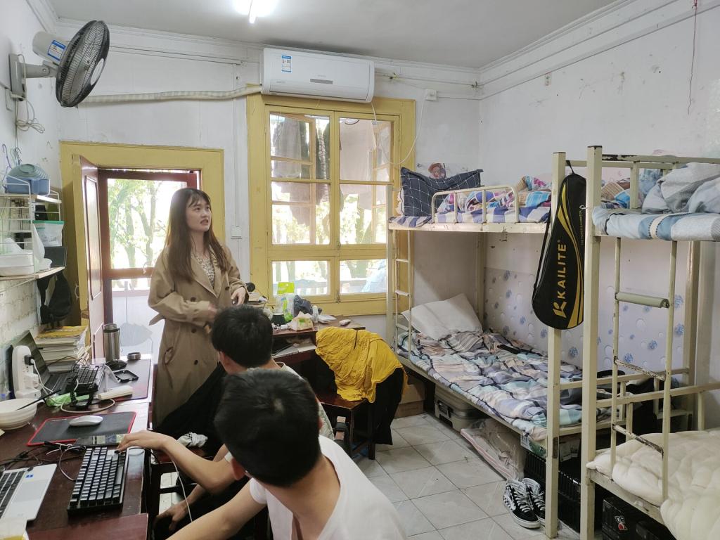 5月4日,计数学院党总支副书记廖良梅带领全体辅导员在洪山园区、知行园区楼栋下寝,深入学生宿舍走访慰问检查宿舍安全,排查安全隐患,落实到每一间宿舍、每一个学生。