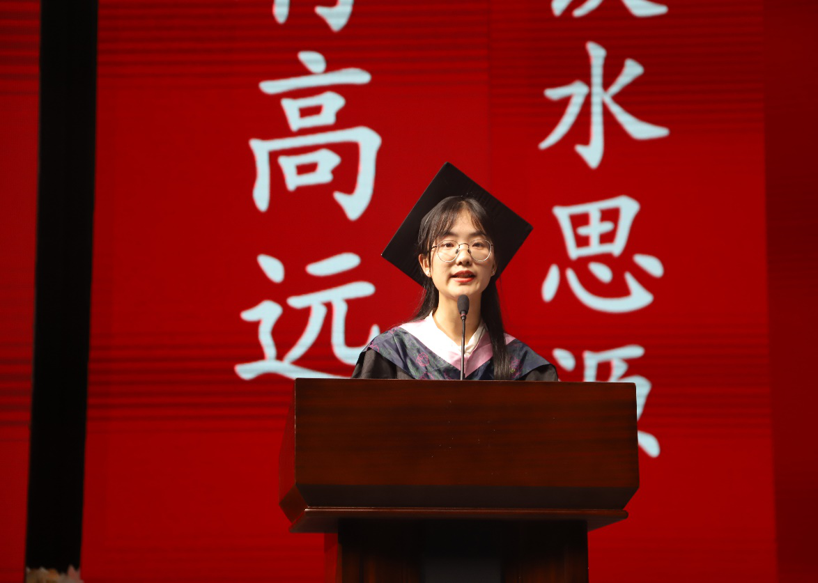 “未来很长,我已经准备好向未来进发了,是时候说再见了”优秀毕业生代表谢宇回顾了在校四年的学习工作生活,感谢学院给予的宝贵的成长资源和自由选择的空间,让自己收获了爱与信念;优秀毕业生代表张紫贤引用诗歌“愿你有一个灿烂的前程,愿你有情人终成眷属,愿你在尘世获的幸福”表达了对所有毕业生们的美好祝愿,祝福所有同学前程似锦、来日方长。