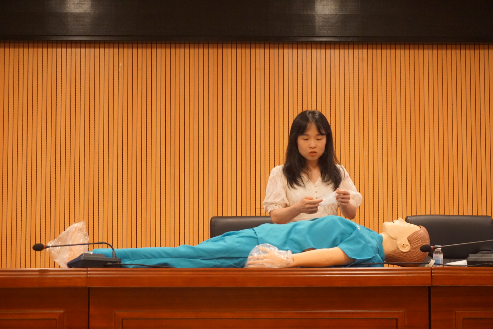 接着,龙琴老师对同学们进行心肺复苏和海姆立克急救法培训。教学过程中,龙琴使用人体模型模拟实际急救过程,同时讲解急救中各注意事项和施救原理,确保志愿者施救前、施救中、施救后都能科学应对。她还列举实际事例,为同学们教授技巧,讲解知识,解答疑虑。志愿者们积极参与实践教学,或以人体模型为对象进行急救演练,或扮演患者配合老师教授海姆利克急救法。