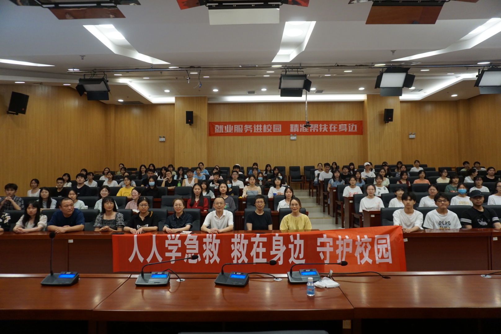 为了有效地防范和处理学生突发事件,学院能第一时间采取应急措施以保障学生身体健康和生命安全,2022年6月14日下午,外国语学院在图书馆一楼学术报告厅开展了应急志愿小分队授聘仪式暨应急专题培训会。此次会议由21英语02班欧阳佳靓主持,后勤处卫生科龙琴老师,外国语学院陈茂老师、赵琼老师出席,各班保卫委员、各寝室长及应急志愿服务小分队成员共计120余人参加。