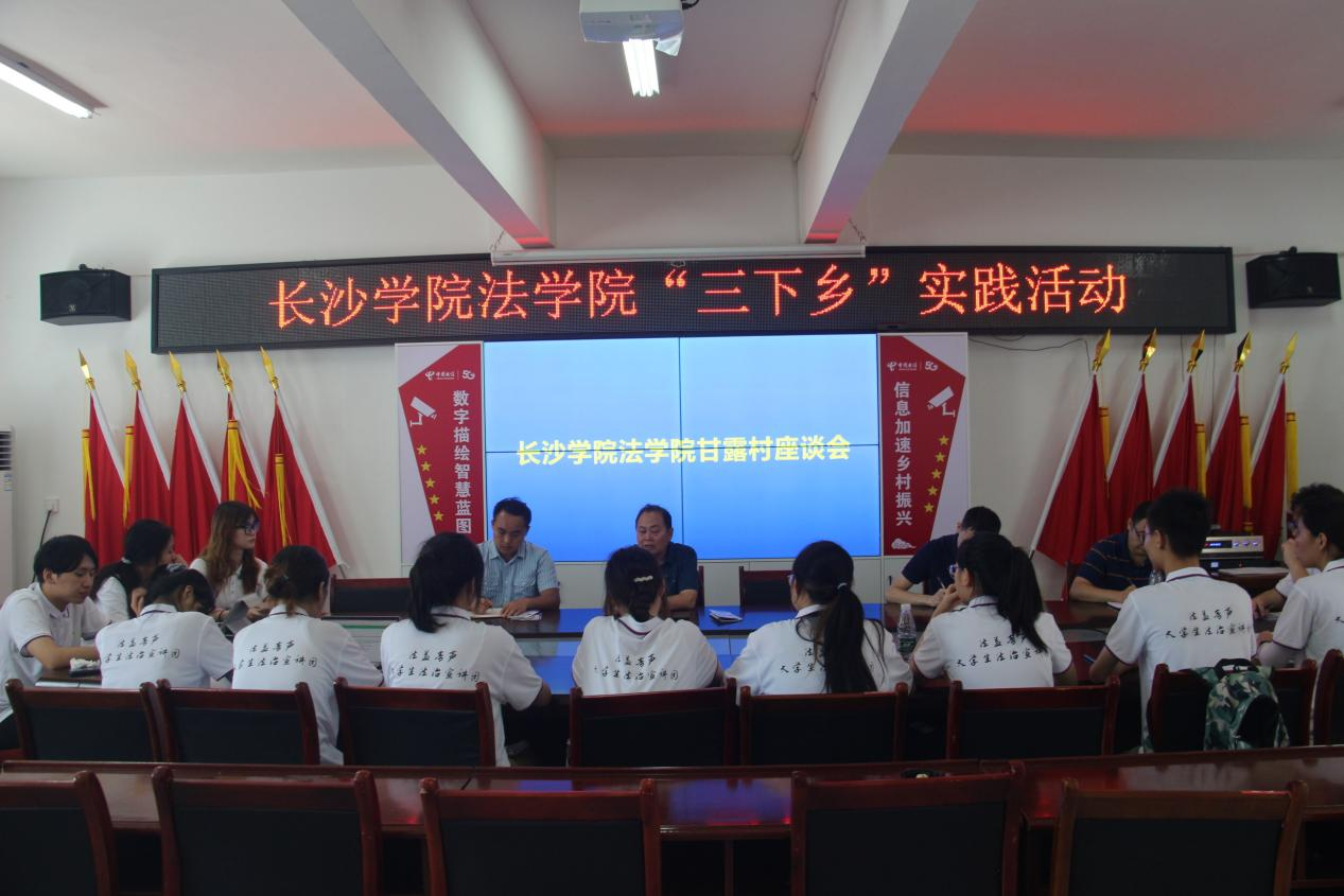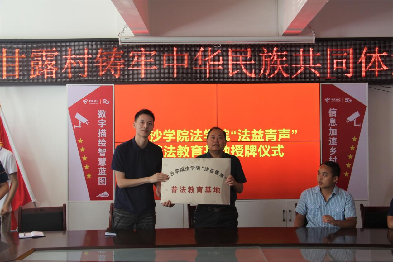 在甘露村、茨岩社区、镇司法所分别举行了“长沙学院‘法益青声’普法教育基地”授予仪式。